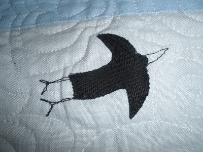 Isn't he gorgeous! This wall hanging is a piece of art! The fox has felt patches on his neck and tail so it is really nice and tactile! I adore it! Look at the fabric in the tree - totally perfect! The quilting is tremendous and I am in awe how Happy Go Lizzie managed to do the stitching so perfectly around the fox and birds. Those birds have the best legs!